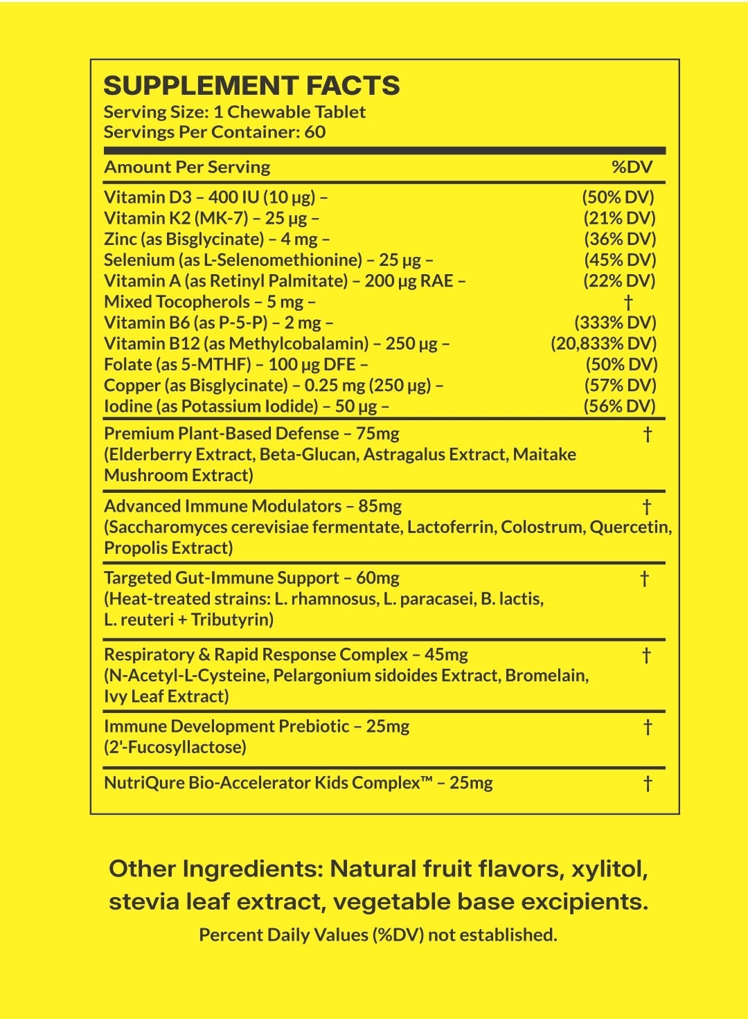 Each delicious chewable is powered by the NutriQure Bio-Accelerator Kids Complex™, ensuring gentle yet effective absorption and all-day immune readiness.